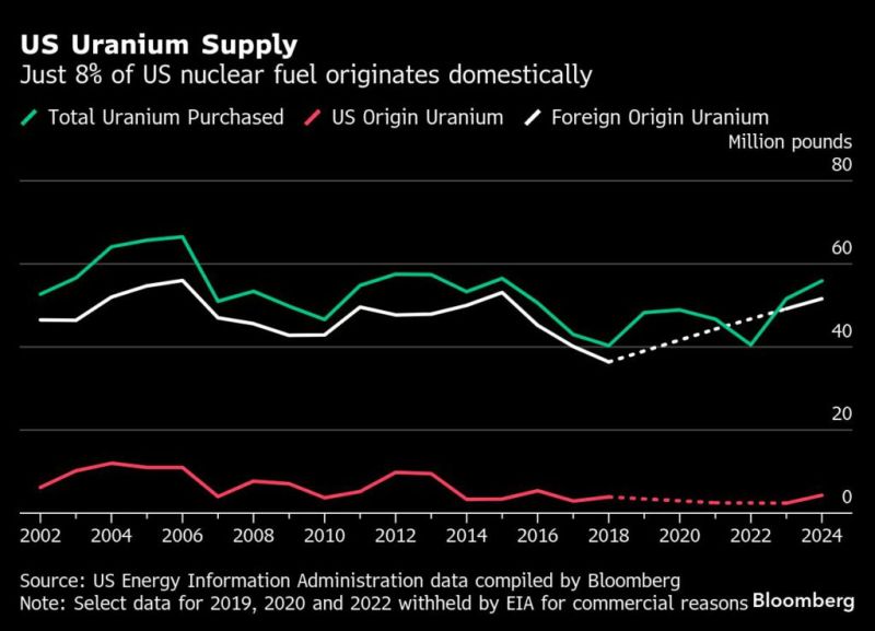 США также намерены увеличить производство обогащенного урана для снижения зависимости от поставок из России.