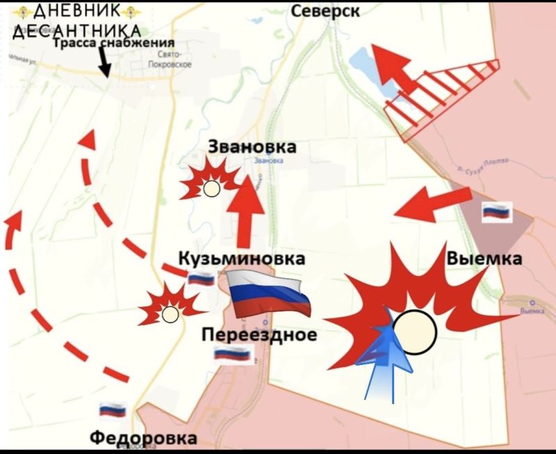 На СНВЕРНОМ УЧАСТКЕ продолжаются активные бои за ДРОНОВКУ и ЯМПОЛЬ. Данные населённые пункты являются ключевыми логистическими узлами для северного охвата СЕВЕРСКА, поэтому противник тут будет упираться и оказывать сопротивление до последнего, – пишет Телеграм-канал Дневник Десантника.