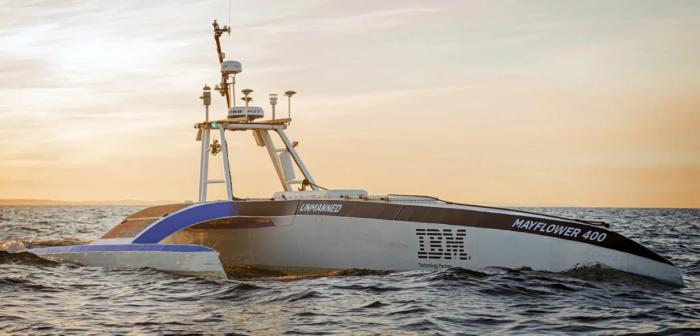 Основой роев управляемых ИИ беспилотных охотников за подводными лодками могут стать такие морские дроны, как разработанный компанией IBM Mayflower AI (Mayflower Autonomous Ship), который недавно в автономном режиме совершил тестовый трансатлантический переход.