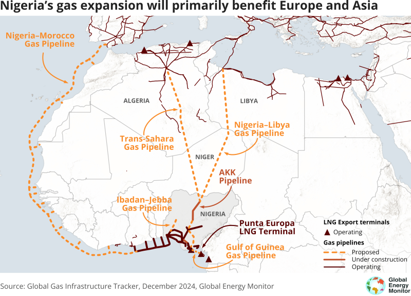 Предполагается, что ежедневно с октября с. г. будет поставляться 1,29 млрд куб. футов газа для обеспечения работы существующих мощностей пока одного действующего с начала 2010-х завода Nigeria LNG (на побережье вблизи бывшей столицы – Лагоса) и её амбициозного проекта – строящегося примерно в этом же районе СПГ-завода Train-7: этот проект на острове Бонни уже выполнен на 80%, а его стоимость оценивается в 10 млрд долл. Все эти мощности нацелены в основном на экспорт, однако постоянные нападения, в основном на территории Нигера, ставят амбициозный проект под угрозу. Более того, в мае стала поступать информация об утрате интереса Нигера к TSGP и о прекращении соответствующих исследований на фоне ухудшения отношений Ниамея с Алжиром, который Нигер и его союзники по «Альянсу государств Сахеля» (Мали и Буркина-Фасо) обвиняют в поддержке террористов в регионе. Предводителями всех орудующих в Сахеле террористических группировок якобы являются выходцы из Алжира, участники кровопролитной гражданской войны 1990-х годов. Вероятный отказ Нигера от строительства трубопровода между Алжиром и Нигерией свидетельствует о недоверии к Алжиру, в том числе по мере активизации последним высылки нигерийцев и других мигрантов из стран Африки к югу от Сахары.