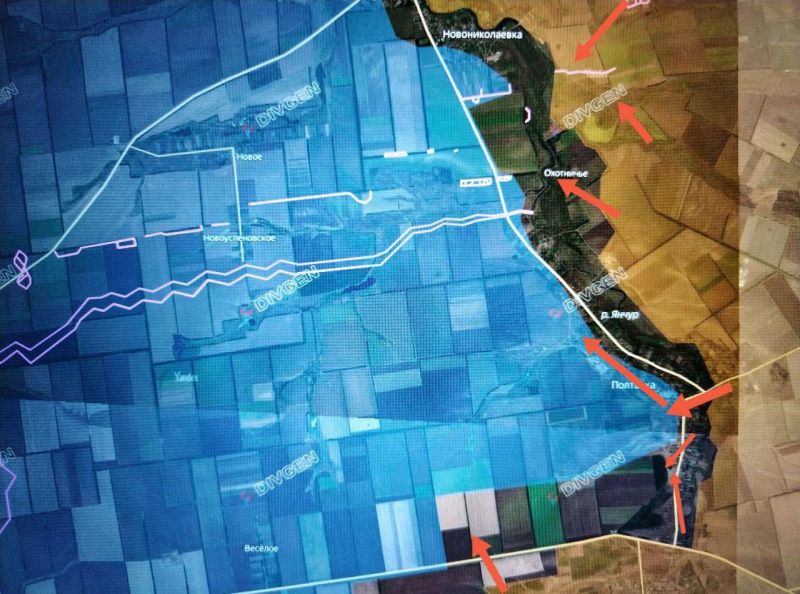 Южнее НОВОГРИГОРОВКИ ВС РФ продвинулись на рубеже УСПЕНОВКА – ПОЛТАВКА. Из чата укропов последняя практически вышла. Наши подразделения ведут зачистку северных окраин Полтавки.