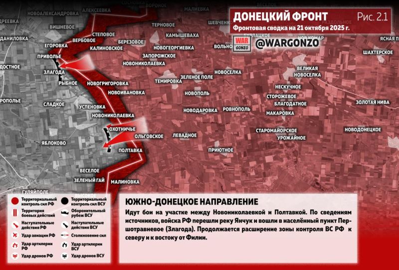 Фронтовая сводка на утро 21.10.2025 г. от Телеграм-канала WarGonzo.
