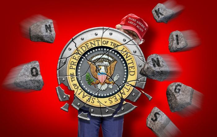 И, разумеется, в контексте вышесказанного Трамп, пришедший к власти на лозунгах о величии Америки, априори не может позволить себе делать нечто, что этому величию угрожало хотя бы в малейшей степени.