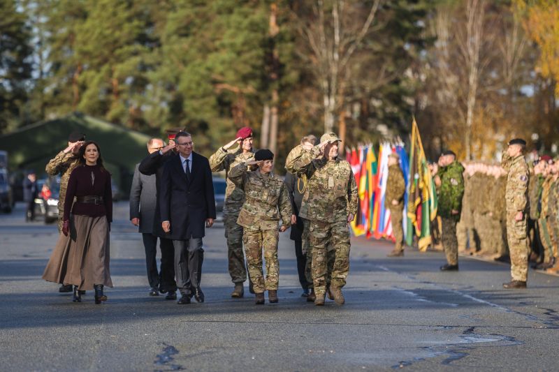 После официальной программы в Риге высокие переговаривающиеся стороны побывали на военной базе в Адажи, где размещён датский батальон, прибывший в балтийскую республику ещё в августе и вошедший в состав бригады НАТО в Латвии, находящейся в подчинении штаба многонациональной дивизии НАТО «Север».