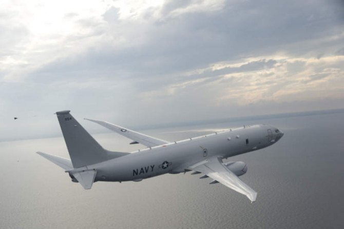 Американский самолёт-разведчик P-8A Poseidon курсирует над Чёрным морем, наблюдая за активностью российских войск в Крыму и Новороссийске.