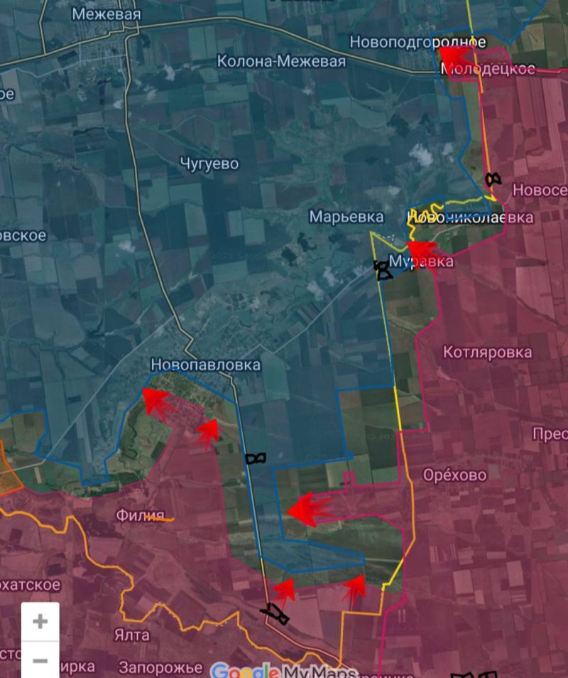 По оперативной информации наши войска начали штурмовые мероприятия в селах ЗЕЛЁНЫЙ ГАЙ и ВЕСЁЛОЕ на востоке Гуляйполя.