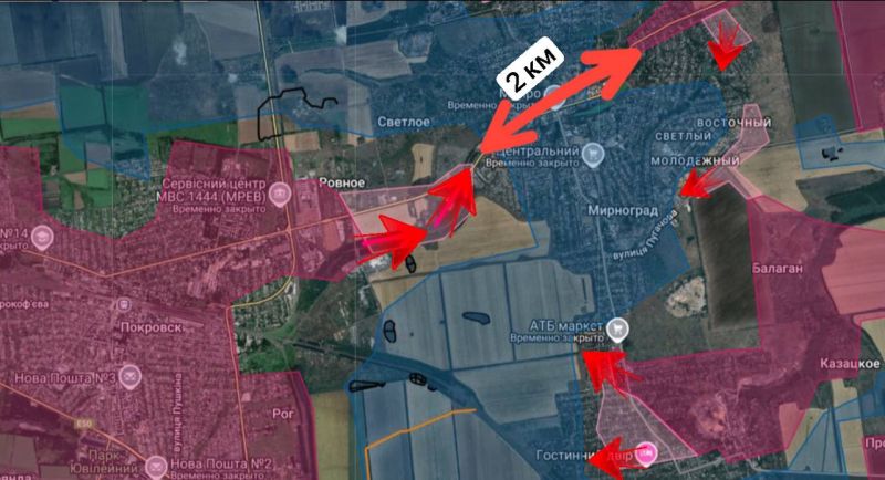 Помимо продвижения в южной части города и с северо-востока, наши войска всё сильнее смыкают горлышко на выходе из Димитрова, – пишет Телеграм-канал Дневник Десантника.