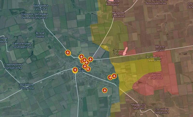 Карта авиаударов по ГУЛЯЙПОЛЮ в преддверие активного штурма.