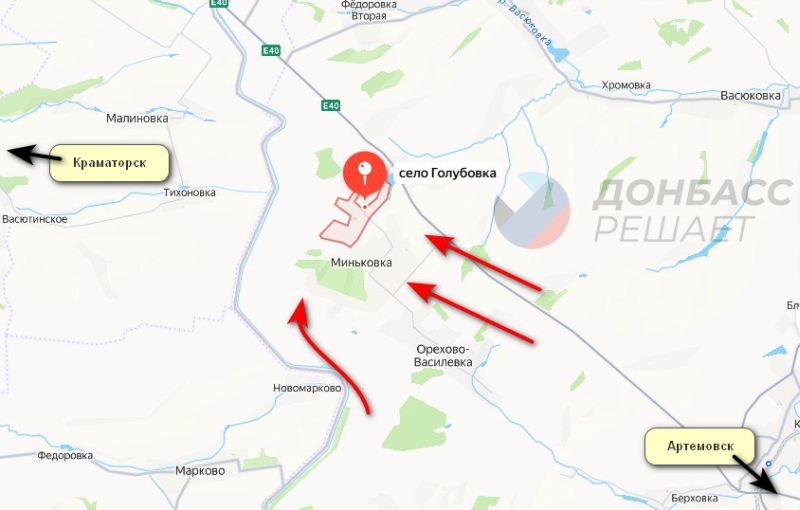 На КРАМАТОРСКОМ НАПРАВЛЕНИИ ВС РФ продвигаются к МИНЬКОВКЕ и соседней ГОЛУБОВКЕ.