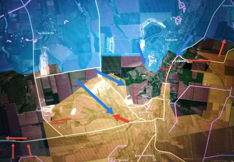 Юго-западнее ЗВАНОВКИ (ДНР) наши военнослужащие уничтожили украинские фортификации и переправились на противоположный берег реки Бахмутка. Сейчас идёт закрепление на новых позициях в лесополосе с одновременным продвижением и расширением зоны контроля вдоль берега. ВФУ оказывают ожесточённое сопротивление, поскольку продвижение наших войск на данном участке создаёт серьезную угрозу флангу украинской группировки в районе населённого пункта СВЯТО-ПОКРОВСКОЕ.