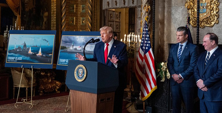 Примерно это и сделал сегодня президент, объявив о пополнении “Золотого флота” – так он назвал обновленный военно-морской флот США – новым классом кораблей, названных в честь Дональда Дж. Трампа.