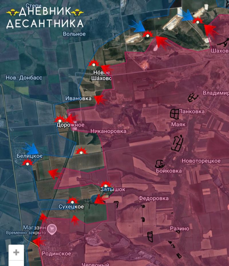 В СУВОРОВО (Затышок) бои сместились к центру, наши войска взяли под контроль восточную часть села и территории южнее, включая два крупный укреплённых опорных пункта, – пишет Телеграм-канал Дневник Десантника.