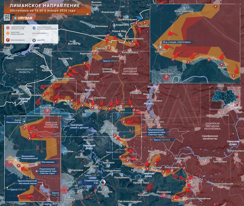 Практически на всем южном фланге направления боевые действия сконцентрированы в массиве парка «Святые горы». Российским войскам это даёт некоторое преимущество, поскольку густая растительность скрывает штурмовые группы от дроноводов противника даже в условиях зимы.