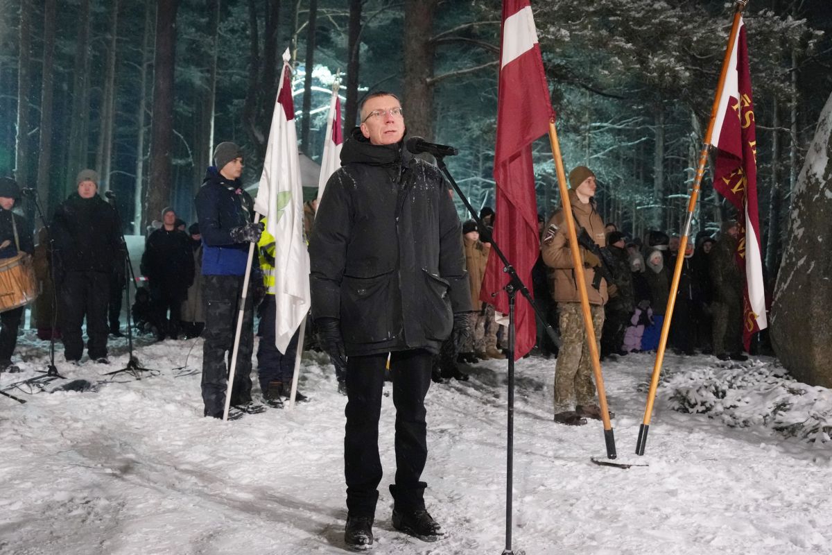 «С какими бы трудностями мы ни столкнулись в своей жизни, они совершенно не похожи на то, через что прошли стрелки здесь, на Пулемётной горке, Тирельских болотах, на Острове смерти (укрепления на левом берегу Даугавы напротив Ишкеле, где латышские стрелки держали оборону в 1916 -1917 годах, которые получили название «Остров смерти), в битвах в войне за независимость. Это момент, когда мы черпаем силы и уверенность в себе, в своем будущем, в будущем нашей страны», – отметил президент.