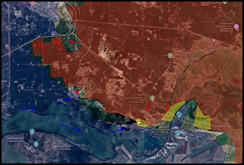 В районе ЯМПОЛЯ ВФУ уже несколько дней пытаются вклиниться между ЯМПОЛЕМ и ДИБРОВОЙ, одновременно контратакуя с целью зайти в ДИБРОВУ со стороны Северского Донца. Атаки предпринимались неоднократно, однако все попытки были сорваны. Продвижения противнику не дали, атаки вдоль Северского Донца пресечены, – пишет Телеграм-канал KRM РФ.
