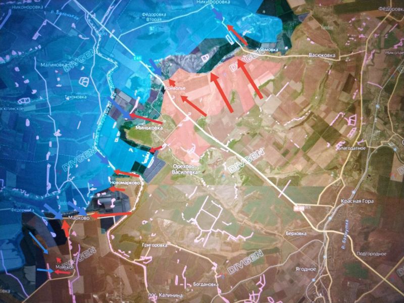 Подразделения ГрВ «Юг», в т.ч. «Доброкора», ведут ожесточённые встречные бои в районе МАРКОВО, МАЙСКОГО и ВЕРОЛЮБОВКИ и продвинулись северо-восточнее, – пишет Телеграм-канал Военкор Котенок.