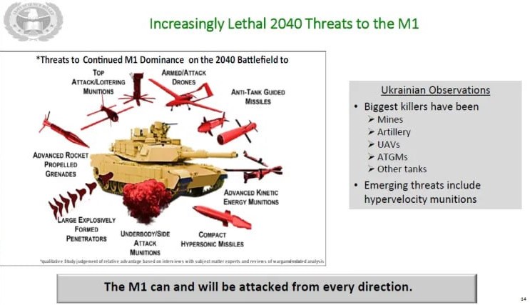 «Вместо того чтобы отказаться от танков, как это сделала морская пехота, армия хочет модернизировать 45-летнюю основу бронетанковой войны США, выведя её в XXI век с помощью M1E3 Abrams. Цель модернизации – создание более лёгкой и модульной платформы, способной выдерживать условия мира, насыщенного беспилотниками и датчиками.