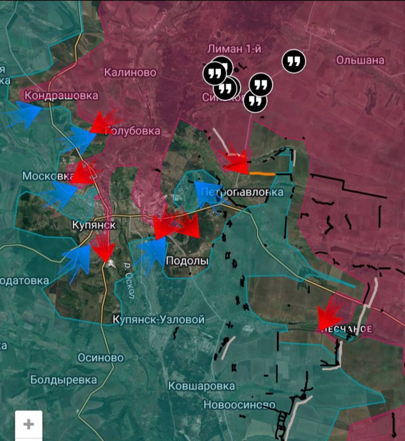 На восточном берегу Оскола продолжаются штурмовые действия ВС РФ на ПЕТРОПАВЛОВКУ, КУЧЕРОВКУ и ПОДОЛЫ.