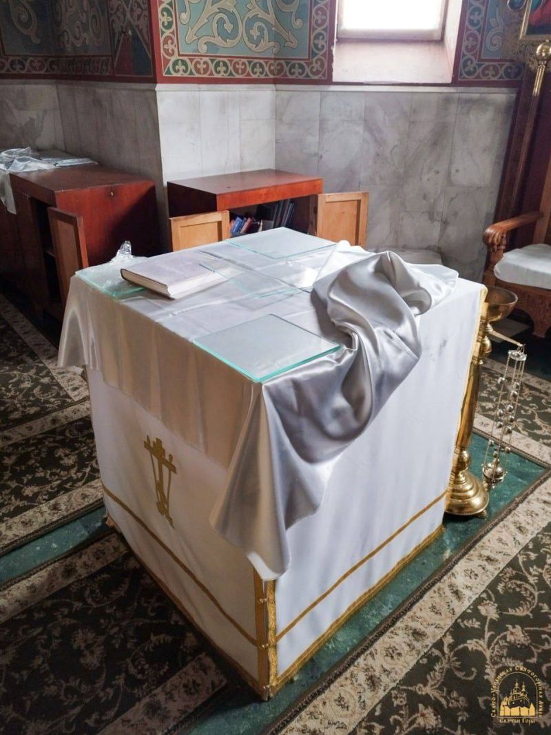 Грабители осквернили алтарь, похитив Евангелия, лампады иконостаса, распятие и церковную утварь, а оставшиеся предметы разбили и разбросали. Также из храма вынесли подсвечники. Кроме того, нацисты вскрыли церковную кружку.