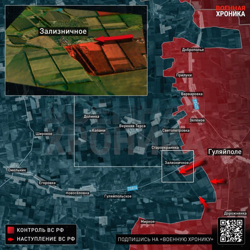 Стоит отметить, что ЗАЛИЗНИЧНОЕ и его окраины пребывают на высоте, где российские подразделения успешно закрепляются. ВСУ пытаются перебросить резервы из села ОМЕЛЬНИК через ландшафтный заказник «Балка резаная», которые мгновенно превращаются в цели для российских ударных FPV-дронов, а также для артиллерии.