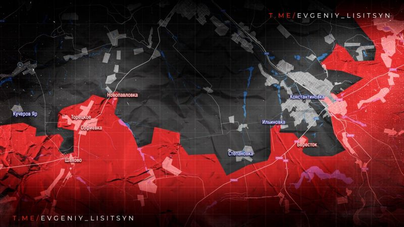 Сообщения об изменении конфигурации фронта на южном фланге пока не поступали. Продолжаются бои в окрестностях ДИБРОВЫ и за ОЗЁРНОЕ, а на соседнем СЛАВЯНСКОМ НАПРАВЛЕНИИ идёт наступление со стороны освобожденного СЕВЕРСКА.