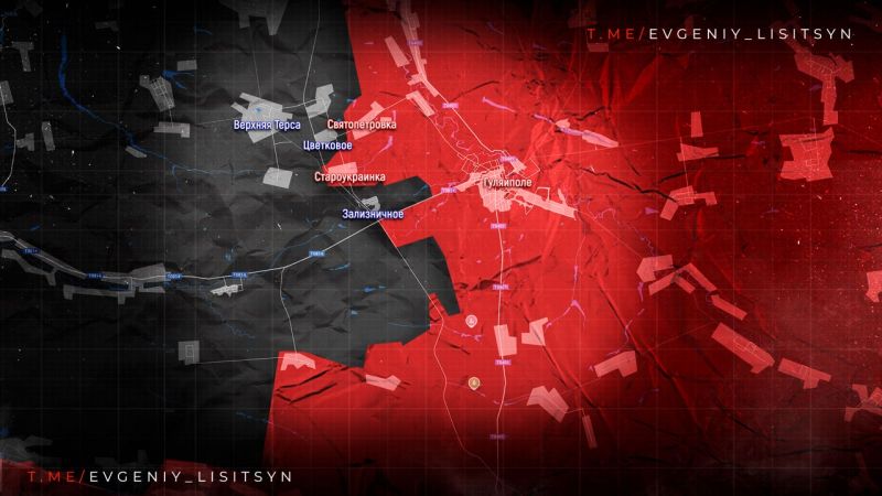 На ГУЛЯЙПОЛЬСКОМ НАПРАВЛЕНИИ ВС РФ вышли на северную окраину ЗАЛИЗНИЧНОГО. Возвращён контроль над севером ИВАНОВКИ, за НОВОПАВЛОВКУ идут тяжёлые бои, центр в серой зоне.