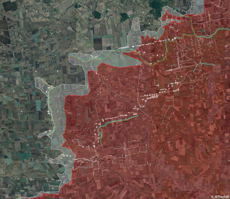 Российские войска развили продвижение на юг вдоль трассы, заняв опорный пункт в руинах фермы к югу от АЛЕКСЕЕВКИ. Закрепление на этом участке усиливает контроль над дорогой и осложняет манёвр противника.