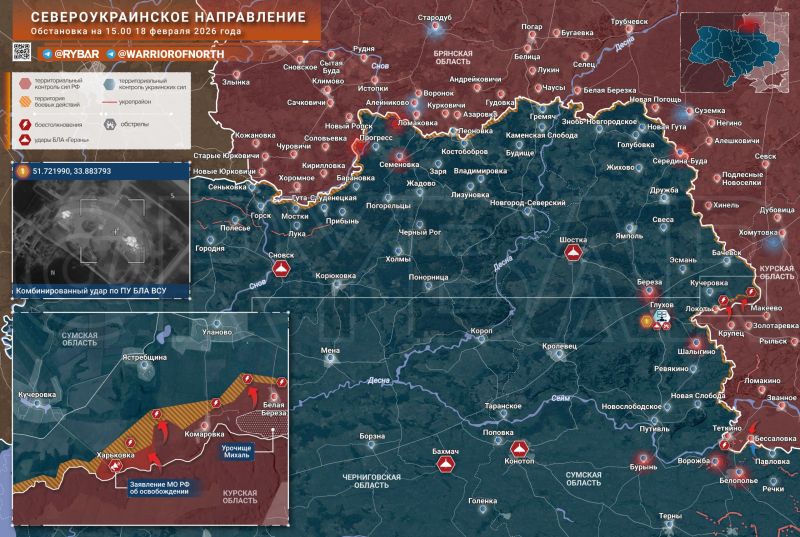 Фронтовая сводка по состоянию на утро четверга, 19 февраля 2026 г. от Телеграм-канала Военкор Лисицын.