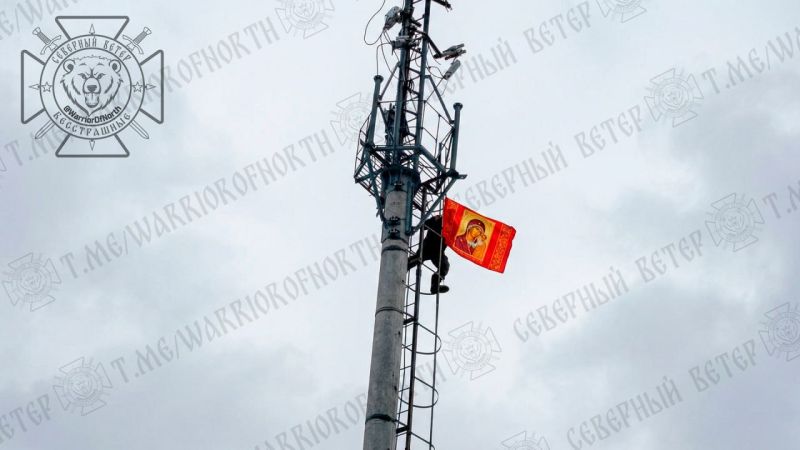 Вражеский оператор беспилотника, не залетая в Чугуновку, зацепил флаг за вышку приграничной Вериговки (уже территория Белгородской области).