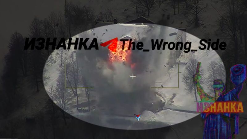На кадрах видна предварительная разгрузка украинскими солдатами некоего оборудования из машины в здание, после чего по нему прилетает несколько «Гераней-2».