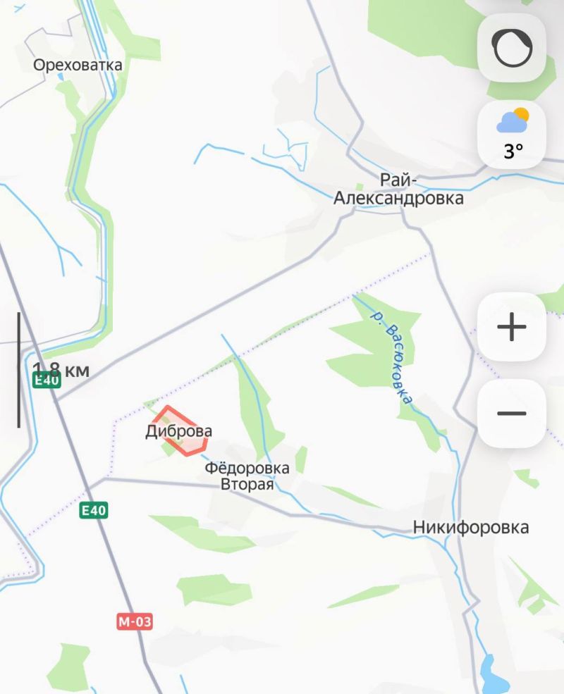 По оперативным сведениям со СЛАВЯНСКОГО НАПРАВЛЕНИЯ, наши войска ведут в данный момент ожесточённый бой за небольшое село ДИБРОВА северо-западнее Фёдоровки Второй, – пишет Телеграм-канал Синяя Борода.