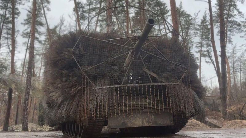 Заглавное фото: антидроновый зонтик на орудии российского танка в зоне СВО, источник Телеграм-канал Военный Осведомитель