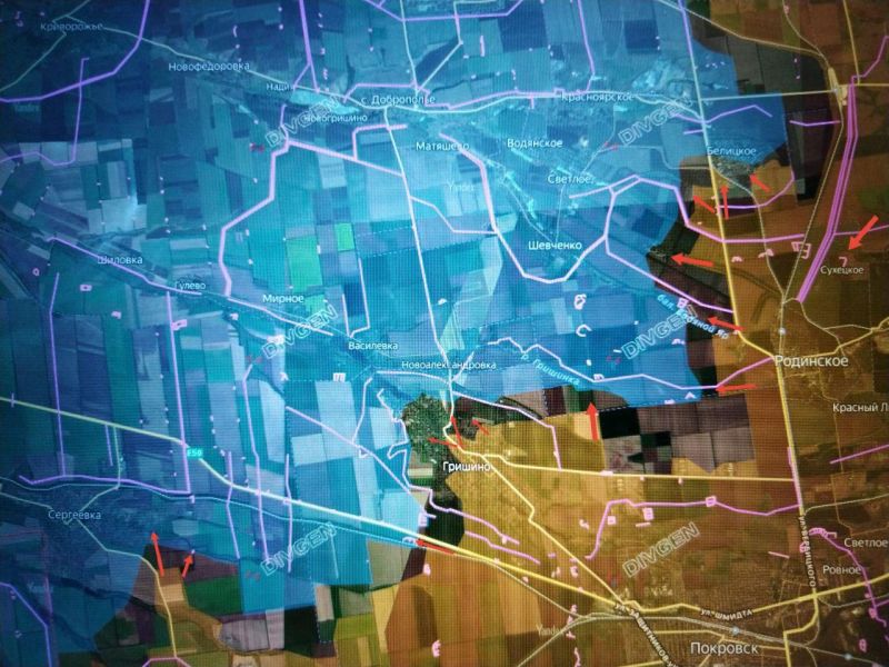 Наши штурмовые подразделения активно продвигаются в направлении ШЕВЧЕНКО с востока, в районе балка ВОДЯНОЙ ЯР – шахта №2 «ВОДЯНСКАЯ», и с юга, со стороны ферм восточнее ГРИШИНО.