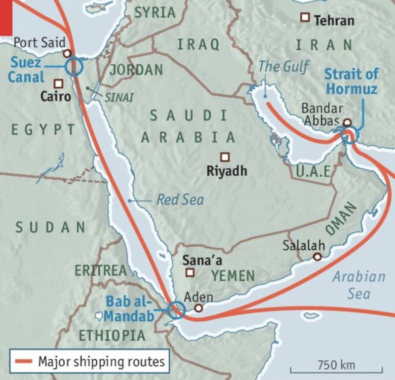 Тем временем канал оказался под угрозой блокировки из-за конфликта с Ираном. О риске повторения ситуации с Ормузским проливом в одном из других стратегически важных проливов Ближнего Востока предупредил на днях высокопоставленный иранский военный. «Если США совершат стратегическую ошибку, то ещё один пролив окажется в той же ситуации, что и Ормузский. Любая ошибка США осложнит ситуацию в регионе, а у Ирана имеются поэтапные и многосоставные военные планы», – сообщают СМИ со ссылкой на источник в иранских военных кругах. Речь идет о Баб-эль-Мандебском проливе между Красным морем и Индийским океаном, блокировка которого прекратит работу Суэцкого канала – по крайней мере, в части международных перевозок нефти и нефтепродуктов, СПГ, контейнерных грузов.