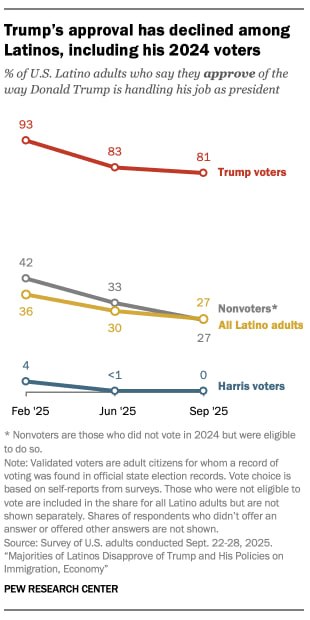 В марте 2026 года рейтинг одобрения Дональда Трампа среди латиноамериканцев упал до 28%, что стало значительным снижением по сравнению с 48% в декабре 2025 года.
