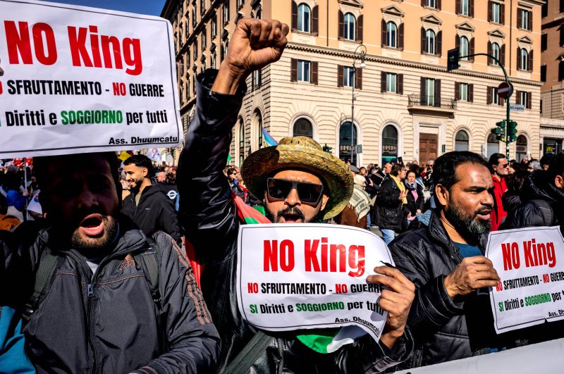 Организаторы протеста No Kings пишут на своем сайте о «незаконной катастрофической войне», которая ставит под угрозу безопасность американцев. «Это Америка, и власть принадлежит народу, а не королям-подражателям или их дружкам-миллиардерам», - говорится в релизе.