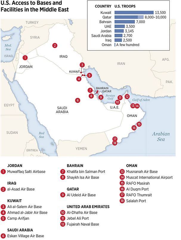 Тем временем ракеты прилетели на нефтеперерабатывающий завод Bapco Energies в Бахрейне, где опасаются, что Иран официально возобновит выдвигаемые им с 1970-х гг. претензии на это небольшое государство с шиитским большинством населения при правящей суннитской династии аль-Халифа, находящейся у власти с конца XVIII века (1). На днях Бахрейн представил проект резолюции Совета Безопасности ООН, впрямую уполномочивающей использовать «все необходимые средства» (дипломатический термин, означающий применение военной силы) для свободы, защиты коммерческого судоходства в Ормузском проливе и вокруг него. Дипломаты из Манамы заявили, что сей проект был поддержан США и соседями по ССГАПЗ, но не Ираком и Оманом, отмечая, что он вряд ли пройдет через СБ ООН, где Россия и Китай обладают правом вето.