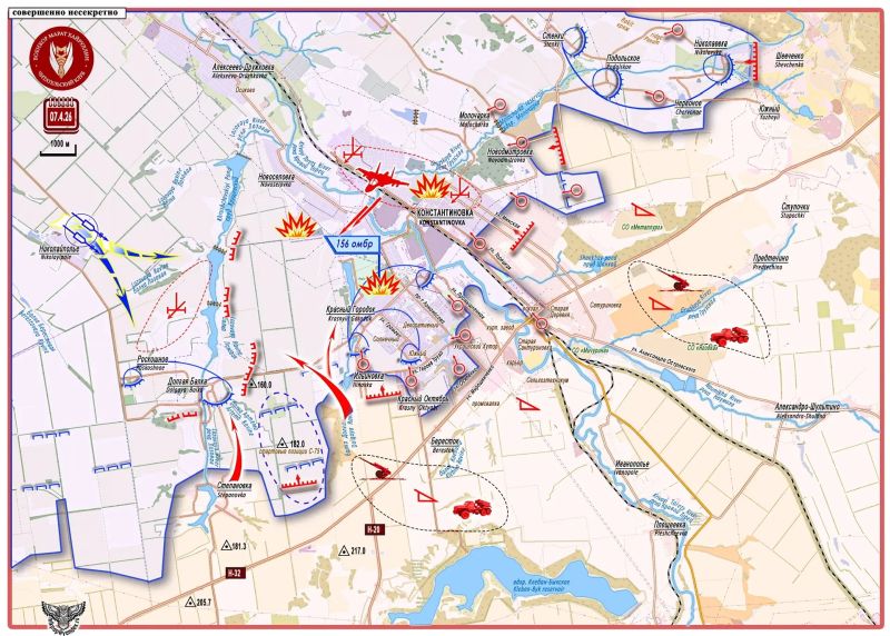 Подразделениями группировки «Юг» ведутся штурмовые действия и зачистка районов города КОНСТАНТИНОВКА. Напряжённые бои идут в районе железнодорожного вокзала. Наблюдается продвижение в районе УКРАИНСКИЙ ХУТОР и ИЛЬИНОВКА, а также штурмовые действия на микрорайоны Декоративный, Южный, Солнечный. Ведётся непрерывное огневое воздействие артиллерией и БПЛА по опорным пунктам обороны и подразделениям противника, пытающимся маневрировать на участке.