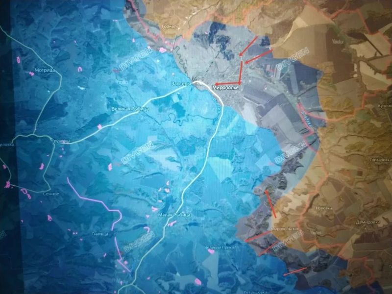 После нескольких месяцев ожесточённых боёв за МИРОПОЛЬЕ ВС РФ прорвались в его центр, взяв под контроль северную и восточную части села, и расширяют контроль в самом селе.