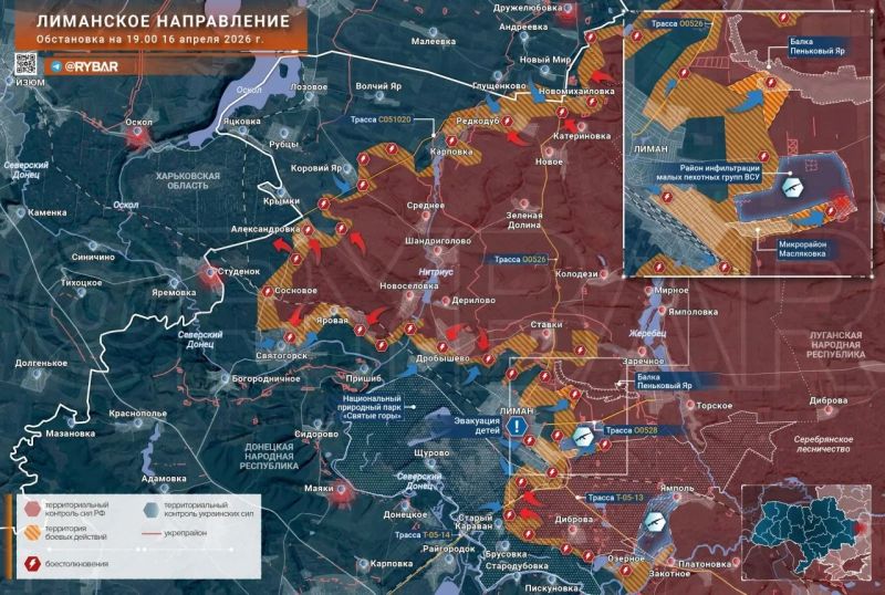 На ЛИМАНСКОМ НАПРАВЛЕНИИ наиболее ожесточённые бои на протяжении последних нескольких месяцев протекают на подступах к одноимённому городу. Овладение ЛИМАНОМ и прилегающими к нему лесными массивами позволит ВС РФ создать прочный плацдарм севернее СЛАВЯНСКА, – пишет МАХ-канал Рыбарь.