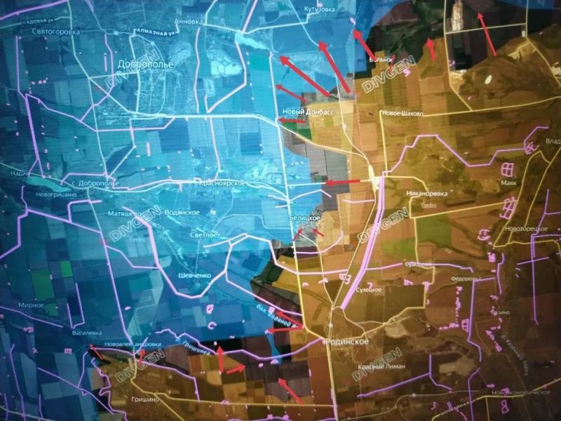 Западнее РОДИНСКОГО под контроль ВС РФ перешла шахта ЗАПОРОЖСКАЯ, восточная часть балки ВОДЯНОЙ ЯР, наши воины продвинулись в направлении высоты с отм. 195,1 по посадке от шахты и с юга, в районе балки ТРЕТИЙ ЯР (восточнее Новоалександровки).