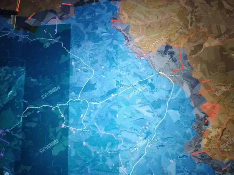 В целом просматривается замысел наших войск на начальном этапе выровнять ЛБС на данном участке по рубежу ГОРНАЛЬ – МИРОПОЛЬСКОЕ, что приведёт к окончательной ликвидации миропольского выступа и создаст более благоприятные условия для нанесения удара во фланг/тыл группировке ВСУ на рубеже САДКИ – ХРАПОВЩИНА – ХОТЕНЬ, обороняющей северные подступы к СУМАМ.