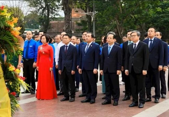 В тот же день к памятнику В.И. Ленину возложили цветы представители учреждений, органов, подразделений, молодежи Ханоя.