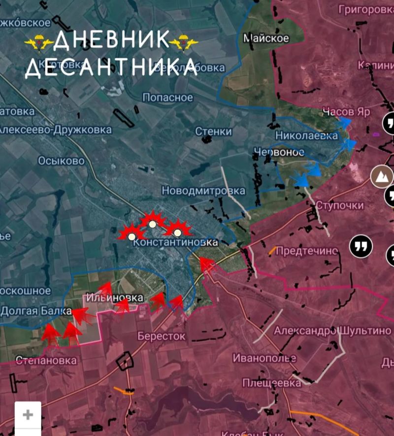 В КОНСТАНТИНОВКЕ наши войска ведут бои на подступах с запада и юга.